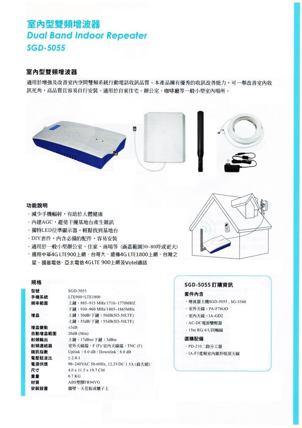 中華,遠傳,台哥大,台湾之星,國基系統3G.4G雙頻段增波器Guided wave 4G LTE SGD-5055